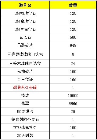 第1名:九尾妖狐(7天)+ 6级宝石自选包*1(有概率获得羽翼升级珠若干)