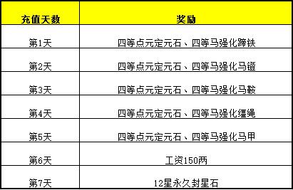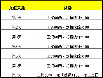 活动期间,玩家每天通过直冲或者点数兑换金子满20元,即可额外免费领取每日充值奖励,而且累积充值天数越多领取的奖励越丰厚,最多可领取7天的奖励。具体如下: