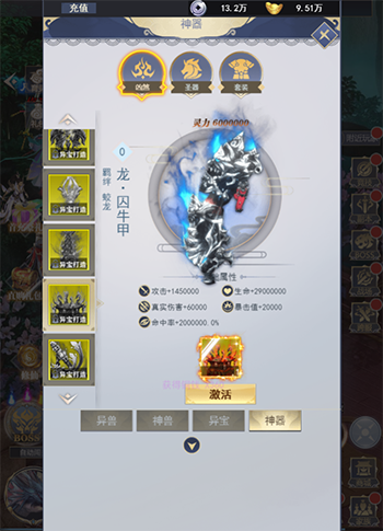 相对应异兽的机制中,神兽也是能够穿戴装备来提升战力的,神兽穿戴的神器将会对玩家的助力提升至巅峰。