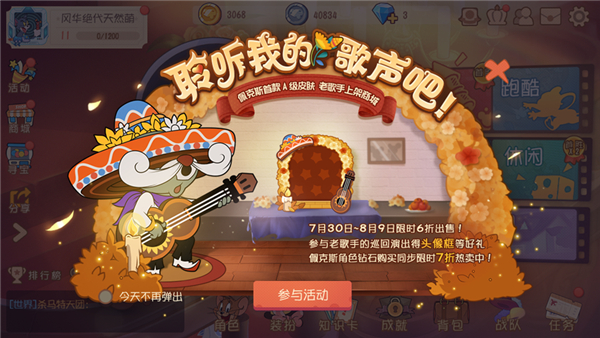 奏起御敌吉他,唱响欢乐追逐。华纳兄弟互动娱乐正版授权,网易精心研发的《猫和老鼠》手游7月30日迎来更新,佩克斯首款A级皮肤“老歌手”闪亮登场,活动期间限时6折出售,佩克斯角色限时7折,还有精彩活动同步上线!