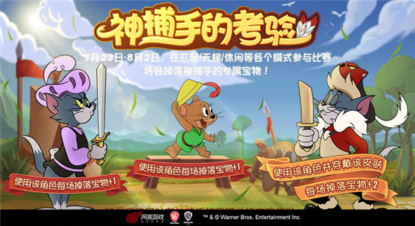 暑假来临,荒原神捕手的限时捕鼠课堂也要开始了!它7月23日至8月2日活动期间,完成除自定义之外的比赛,就能赢得神捕手的宝物,在对局中使用侍卫汤姆或者罗宾汉杰瑞,将可以使得每次掉落的宝物+1,在使用侍卫汤姆的同时穿戴荒原神捕手完成比赛,将使得每次掉落宝物+2!获得的神捕手的宝物将可以在荒原小铺中兑换丰富奖励。