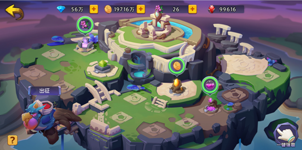 玩家主岛(守望塔)等级越高,周围的随机岛屿数量越多。随机岛屿会出现怪物岛,宝藏岛,战胜岛上的敌人可以获得丰厚奖励,奖励包括各种金币,魔兽强化材料和红泥用来建设自己的花园。