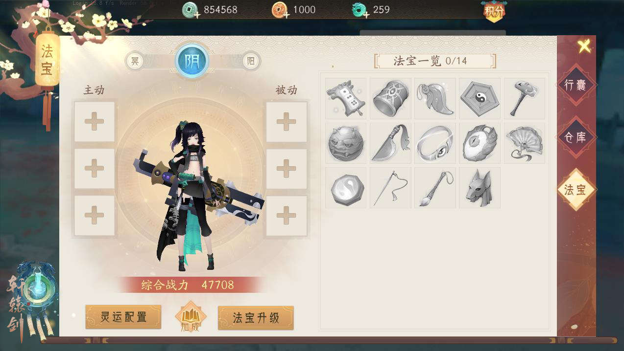 本周更新后,少侠可通过金玉满城、梦境试炼等玩法或积分解锁法宝,在行囊法宝栏中启用,即可用其上阵杀敌,一展神威。