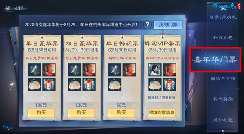 8月7日-8月26日售票期间,玩家登陆游戏福利界面即可选购。为了向广大玩家提供福利,凡购买嘉年华的玩家到场就可以获得全服唯一坐骑抽奖券以及坐骑【布丁鼠】礼包1份。