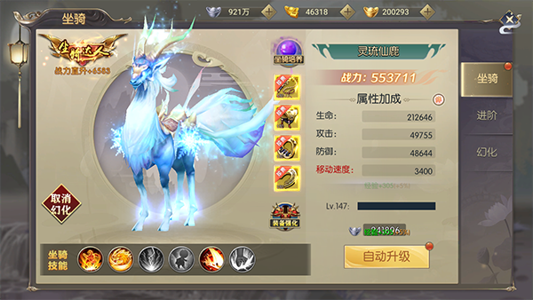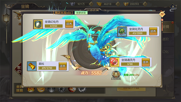 3. 坐骑升级使用银两进行升级,升级成功直接加战斗力。