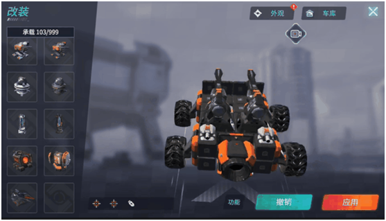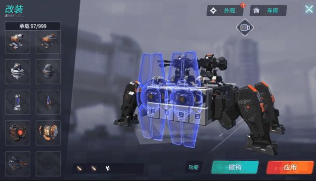 腾跃属于移动模块中的机械腿,前后各方向都可以安放,机械腿越多,弹力越足噢!由于机动性高的原因,还可以绕着战车中心旋转!