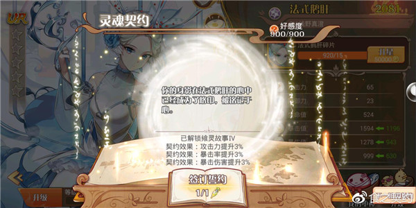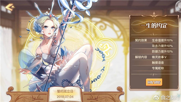 完成契约签订的飨灵将会得到更高的提升!并且会解锁最后的飨灵故事以及新的语音~