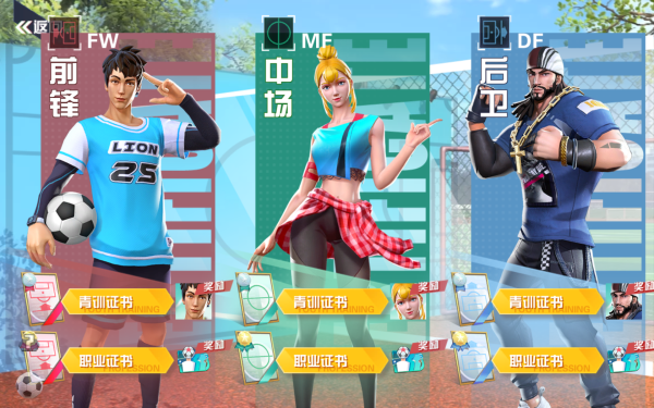 至于中场以及其他的证书考取也不一一列举啦,总而言之新玩家可以通过生涯中的证书玩法最快集齐的前、中、后场各一名球员,外加签到奖励获得的黑人小子,如此一来就拥有了4名球员外加等级达标就可以开启匹配赛玩法,和全网玩家匹配组队4v4实时竞技,玩转绿茵之巅。