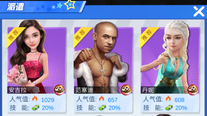 俗话说术业有专攻,有些艺人去到合适的建筑就可以发挥更多大的作用。所以在选择艺人时,老板可以留意左上角的推荐标志,代表着TA的技能适合在这个建筑上发挥!