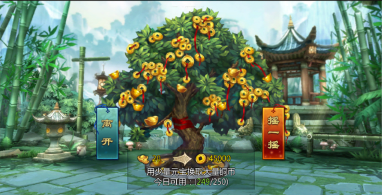 1.摇钱树。每天完成每日任务必摇一次,土豪就随意啦,这毕竟是随时随地可以摇来的钱,不像其他的那样有次数限制。