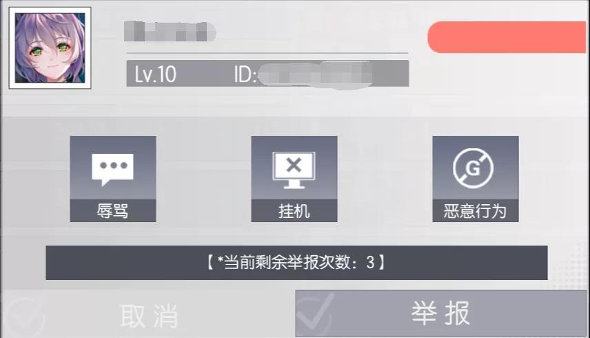 游戏中的举报选项将分为三个部分辱骂、挂机、恶意行为