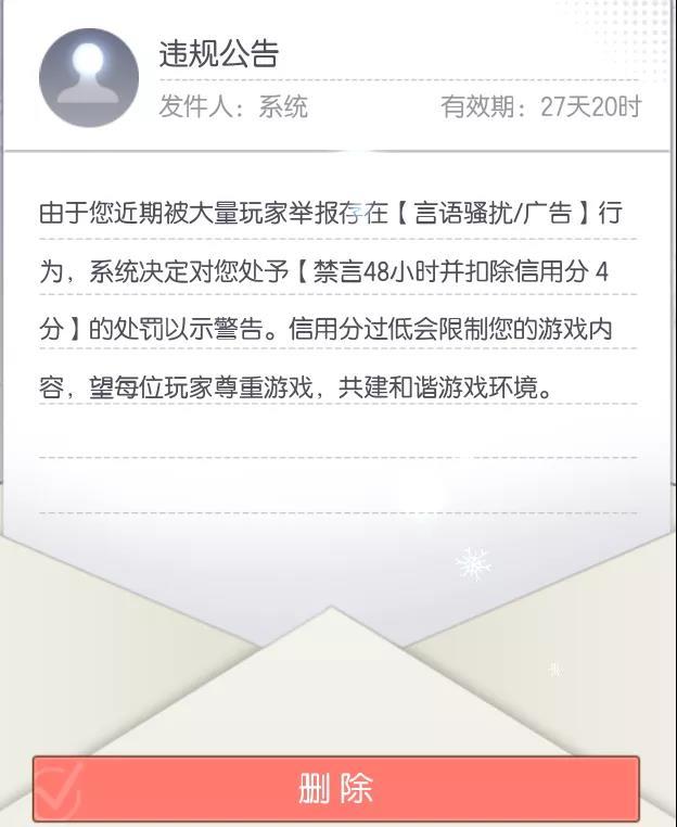 并且因言语骚扰/广告而被举报时不光在扣除大额信用分的前提下,还会禁言48小时,同时也会向举报者进行邮件的反馈