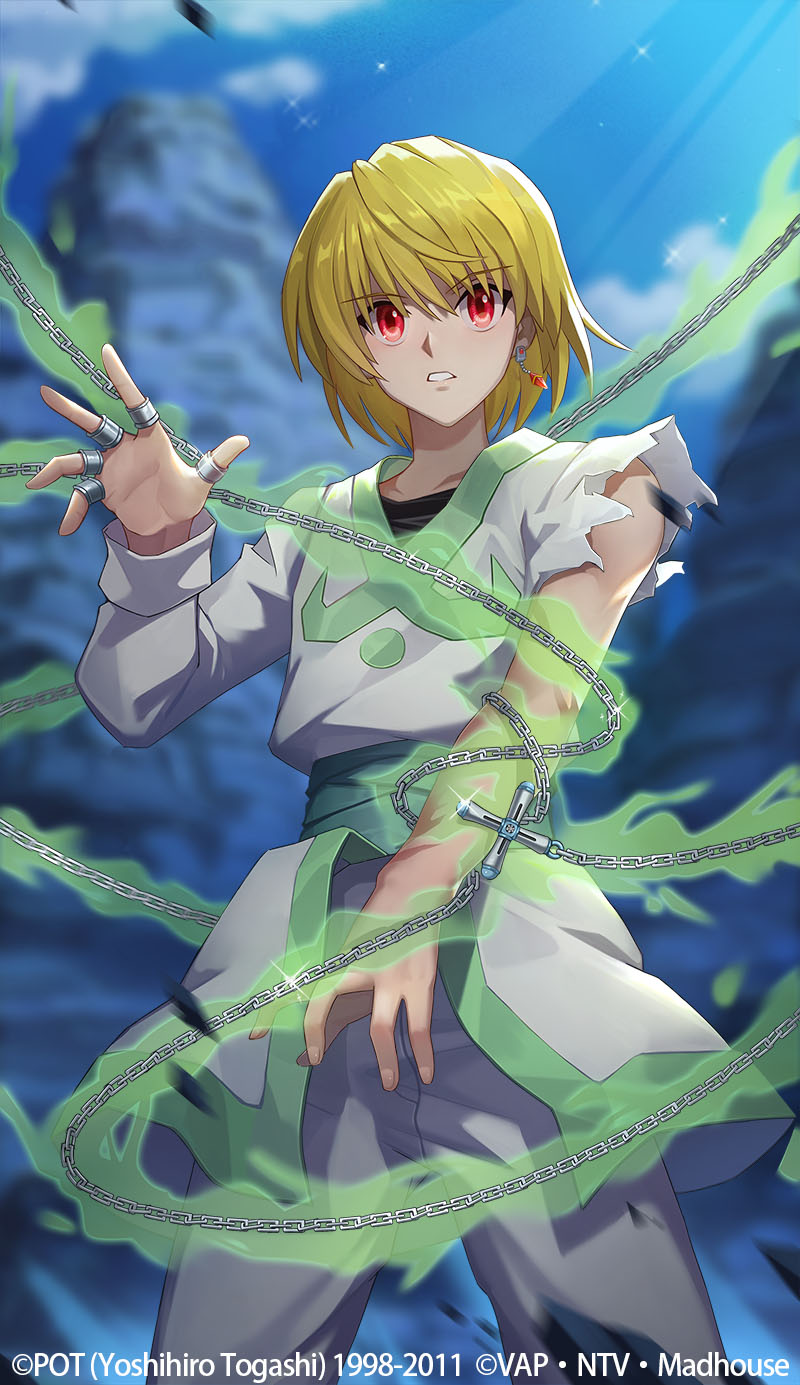通过猎人考试之后,酷拉皮卡开始了他寻回族人的眼睛以及向幻影旅团的复仇之路。在与窝金一战中,他换上了白色民族服饰,展现出自己的强大的念能力。战斗大获全胜,开启了他复仇之路的第一步。