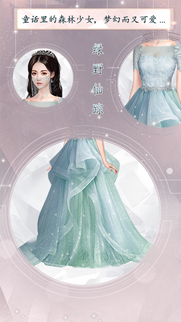 水晶与钻石透射着夺人的光芒,而层丝环绕的绿色纱裙,像是树梢下的少女抬头看到的美景,清新但又不失庄重少女的礼服有着许多的秘密。