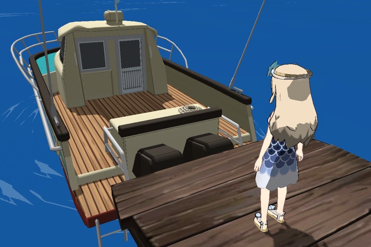 至小森村「沙灘」,前往碼頭的方向搭乘探險艇出島囉