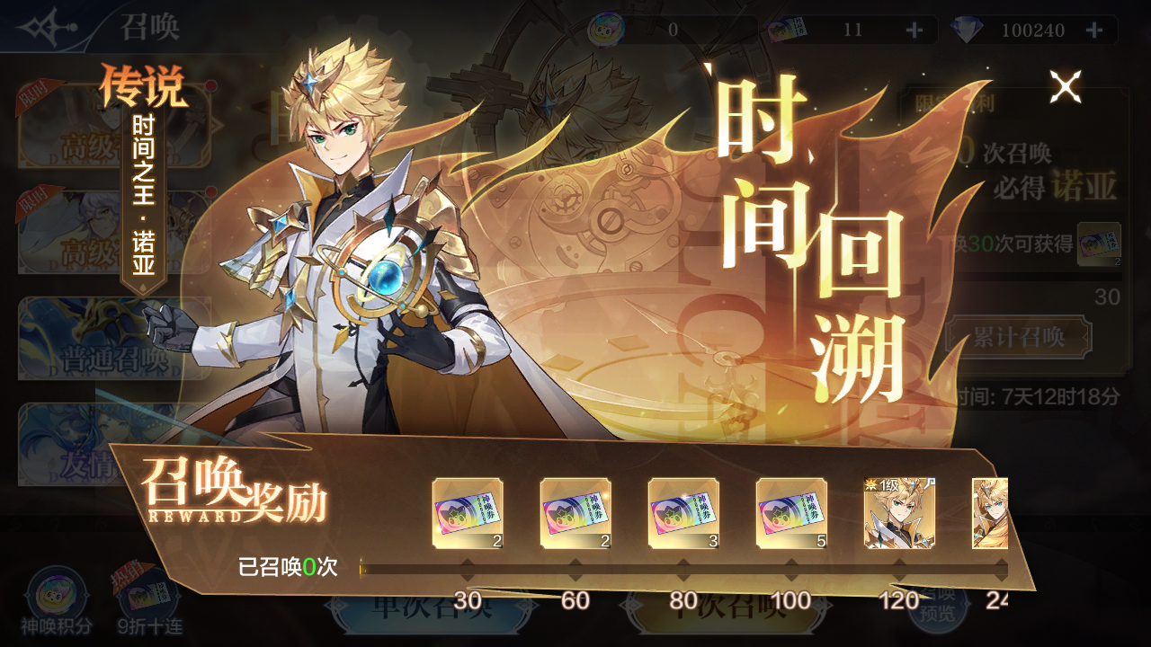 温馨提示:[时间王者·诺亚]为活动限定精灵,将于本次活动结束后从高级召唤中离开,本次限时回归不继承上次[时间回溯]召唤中的进度