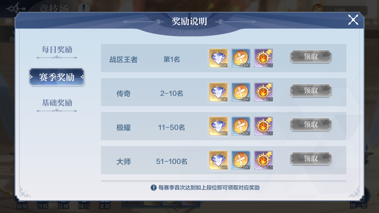 新赛季规则:进入新赛季后,战区会重新分配,玩家当前排名重置,赛季段位奖励重置(新赛季中首次达到指定段位,即可领取奖励)