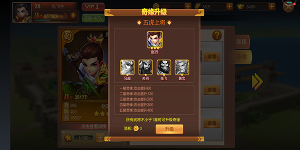 1.五虎上将:熟读三国小说的小伙伴们都知道是哪几位武将啦,没错,就是我们的:赵云、关羽、张飞、黄忠、马超,激活后可以获得攻击力的提升。