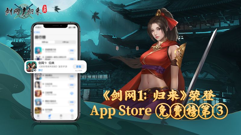 《剑网1:归来》手游已于15日10:00正式开启全平台不删档测试。开服首日,游戏便广受好评,玩家反响热切。目前游戏已冲到了App Store免费榜第3,角色扮演游戏分类第1。