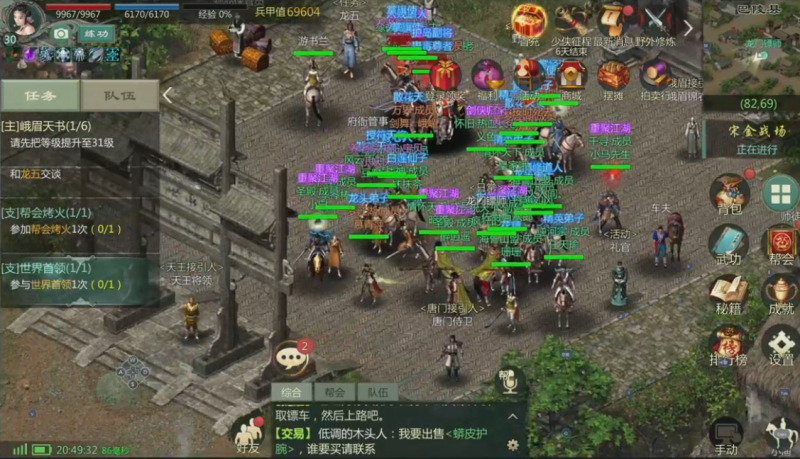 此外。《剑网1:归来》还延续了端游的自由交易系统《剑网1:归来》的装备允许玩家间自由交易。在常规的“拍卖行“等系统交易体系外,游戏还允许玩家直接面对面交易。游戏采用了掉落的装备不绑定的设定,且其附加属性都随机生成,可以让玩家直接摆摊出售,从其他玩家那里换取游戏银票等付费货币。除了直接的道具交易外在参与帮会活动后,产出的道具还可以在帮会内、服务期内进行拍卖,每位参与活动的帮会成员可获得丰厚金币分红。对于大多数平民玩家而言,这样的交易系统可以让他们实实在在地获的更多的受益。