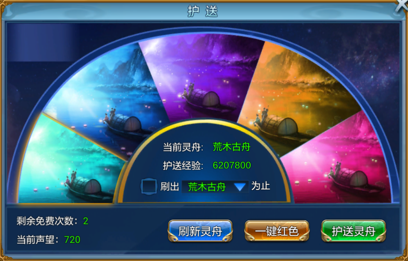 1. 灵舟品质由低到高分为绿、蓝、紫、橙、红五种,品质越高,奖励经验越多。