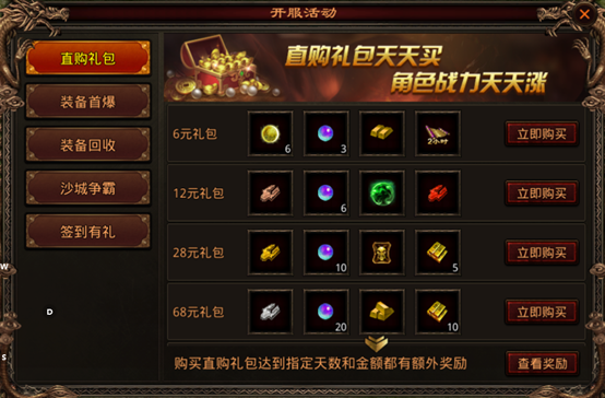 每日的直购礼包除了可以获得大量稀有资源,还会赠送大量活力宝玉。