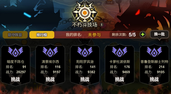 7. 在新的斗技场进行挑战,旧的斗技场排名将会消失(挑战前会进行确认提示)