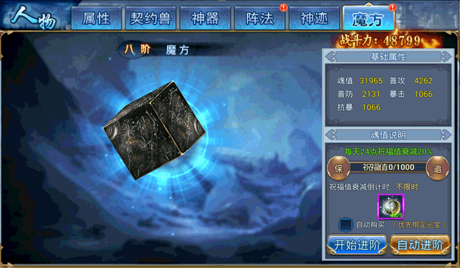 玩家激活魔方后,即可通过进阶的方式对魔方进行提升,魔方进阶材料可以通过副本大厅内的材料副本来获取,每天都有哦。