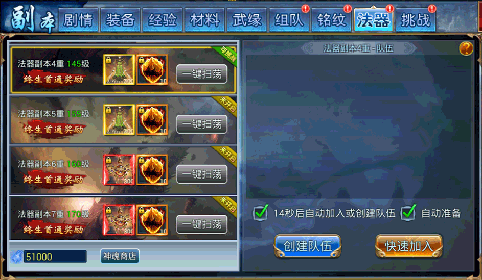 玩家达到75级即可开启法器系统,从此走上逆天修行之路。