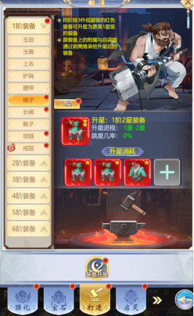 装备是《云汉仙侠录》中作为角色最重要的战斗力来源,装备越好战力自然也就越高。一套好的装备能为玩家们带来大量的战力加成。装备一共分为六种品质,按照品质从低到高排序分别为绿色、蓝色、紫色、橙色、红色及彩色。品质越高,带来的战力加成也就越多。相对的,品质越高的装备获取难度也会随之提升。