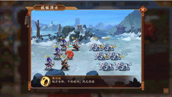 对敌方全体造成大量物理伤害,清除自身所有【风劲】并造成额外伤害。对敌方攻击最高1人施加【妖气识破】2回合,并对我方除自身外攻击最高1人施加【血红铁碎牙】,持续整场。额外对敌方全体施加【流血】,持续2回合造成大量额外伤害。提高我方全体护盾上限并对除自身外武将施加【护盾锁血保护】,并提高全体一定攻击力和防御力,持续2回合。