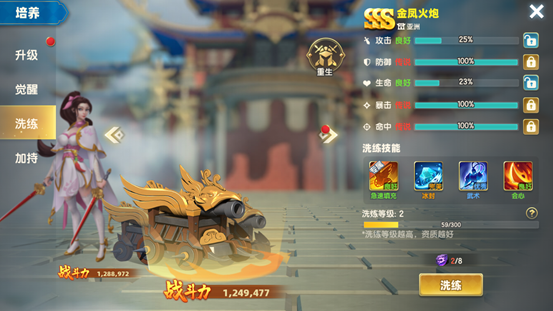 侍卫洗练消耗洗练卷轴,每次洗练,5种资质会随机变动,每种资质最高可以洗练到满值;玩家也可以锁定某些洗练得较高的资质项来保留已经洗练好的属性,锁定后每次洗练消耗的洗练卷轴数量会增加;玩家每次洗练也会随机洗练已经有的侍卫技能;