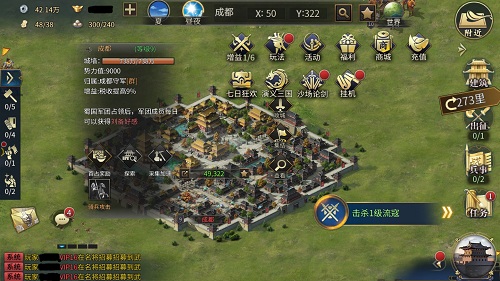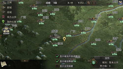 主公需要先加入军团,才能获得攻打各国王城(魏国许昌、蜀国成都、吴国建业)的资格,而且攻打王城前需要先攻打两座副城,例如攻打成都之前,要先占领广汉和临邛。