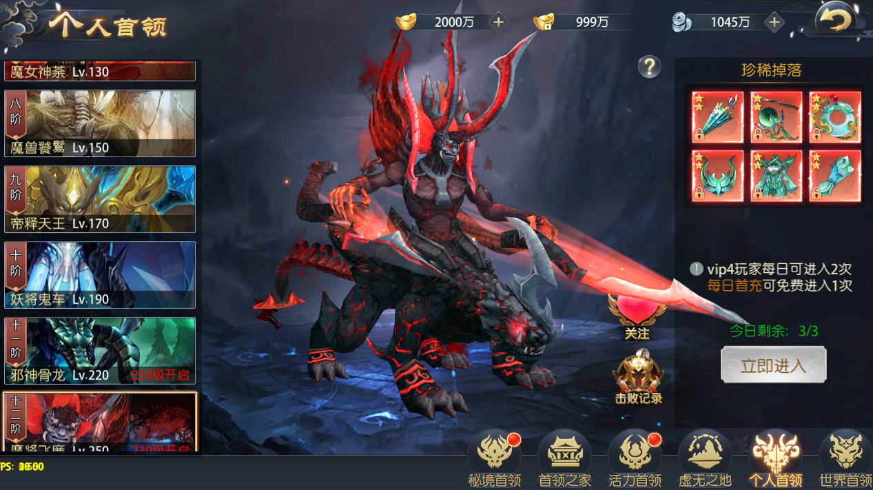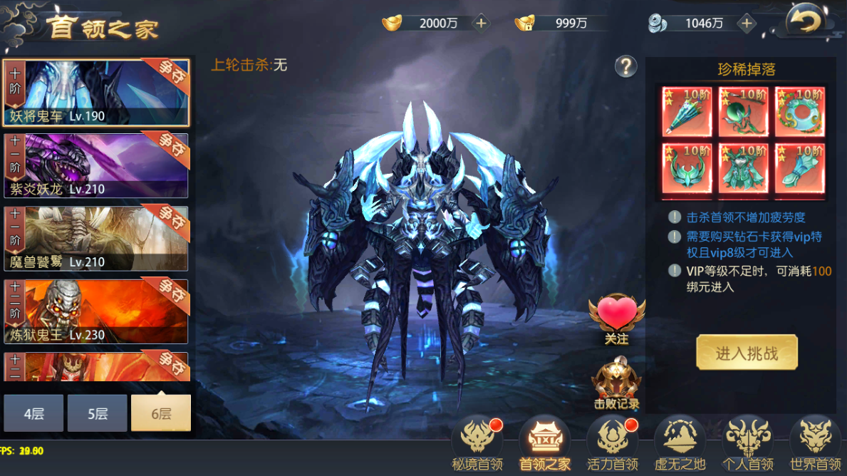 1、不同等级的玩家可以挑战对应等级的首领,无法去挑战低等级首领