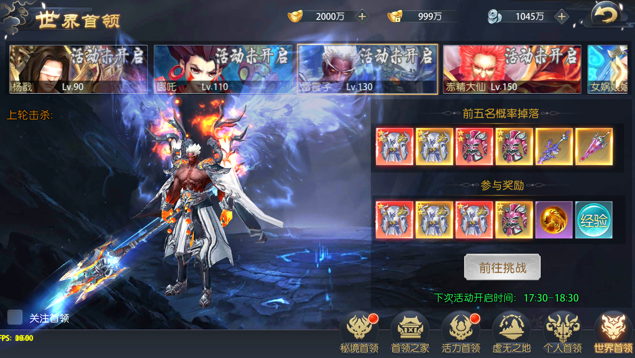 秘境首领、首领之家、活力首领、虚无之地、个人首领、世界首领