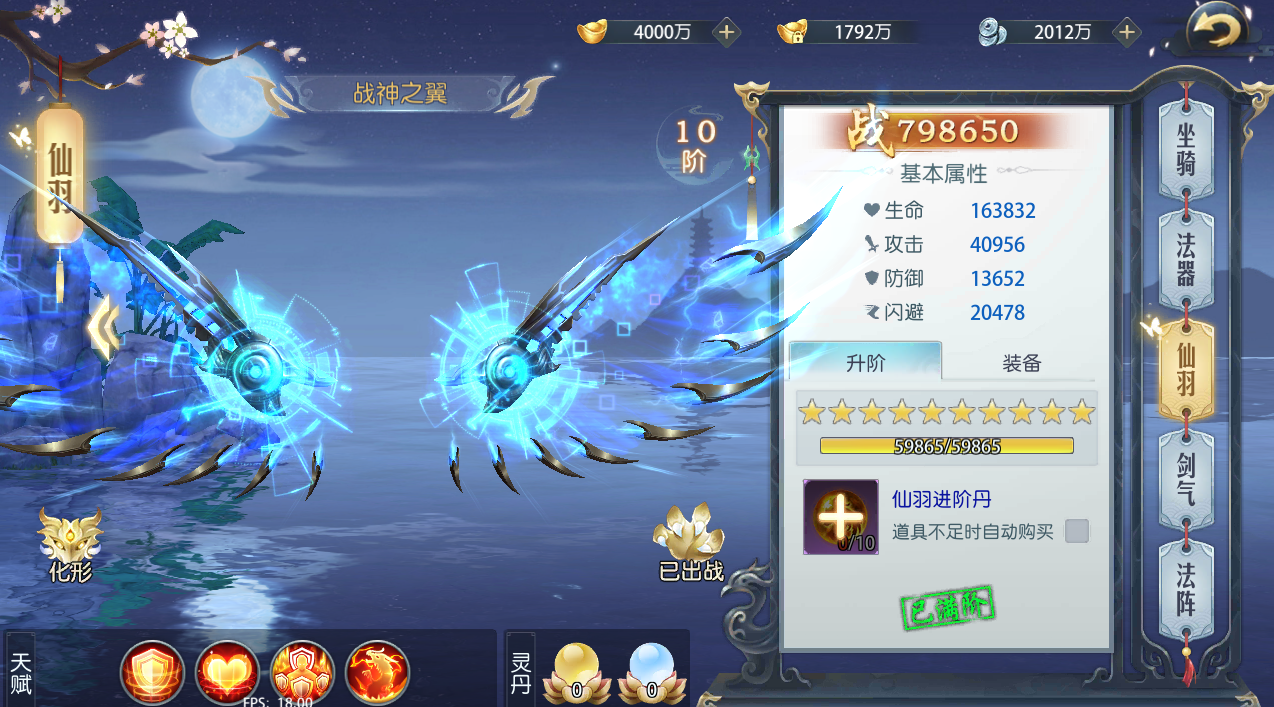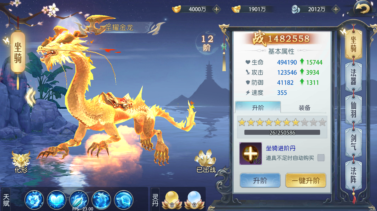 坐骑、法器、仙羽、剑气、法阵