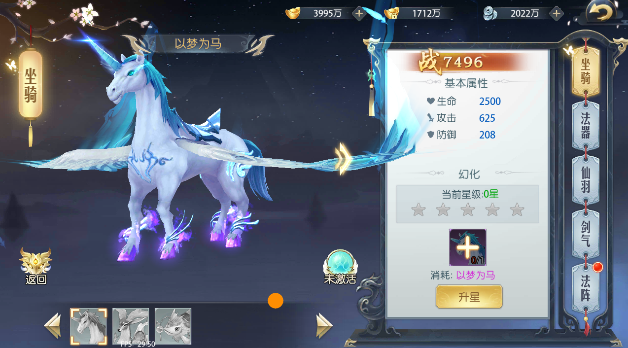 2、 以坐骑为例,装备部位分别是马鞭、马鞍、铃铛、蹄铁