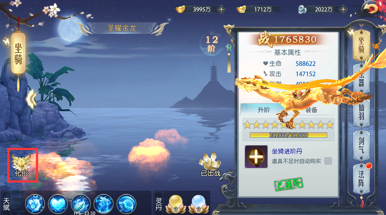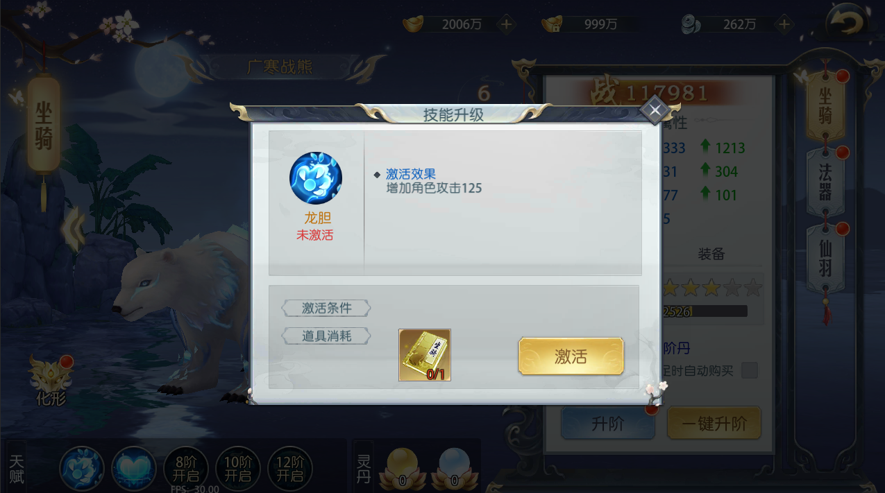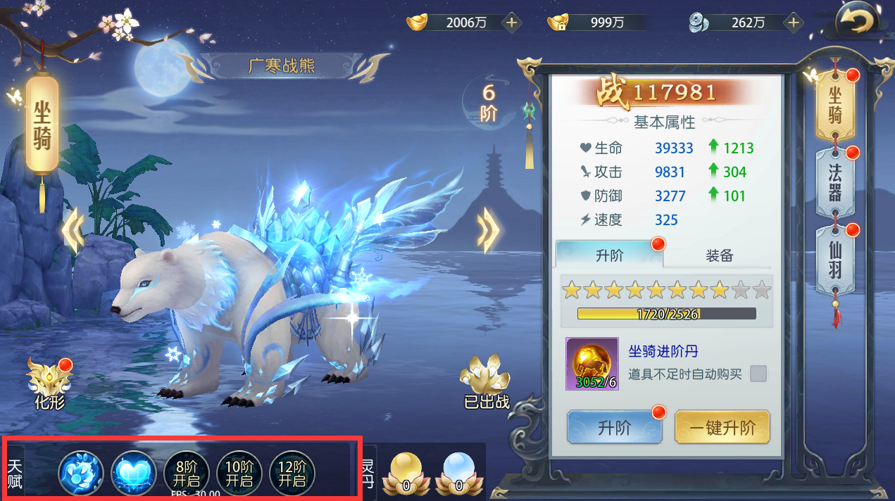 1、 当进阶达到一定阶数后,比如坐骑8阶,即可开启第三个天赋技能