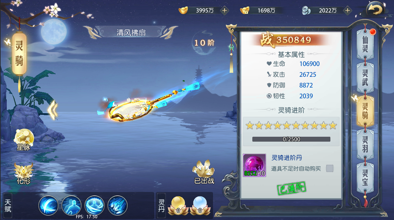 1、 仙灵比较特殊,有2种升级道具,并且提升显示使用等级,其余4种均是使用星阶
