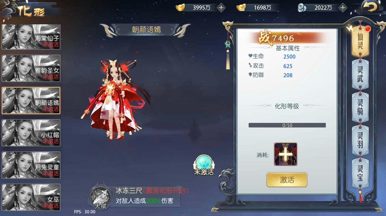 1、 仙灵、灵武、灵骑、灵羽、灵宝均有对应的化形,支持玩家个性定制