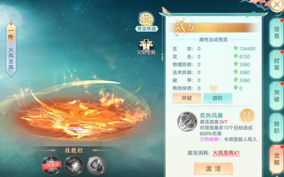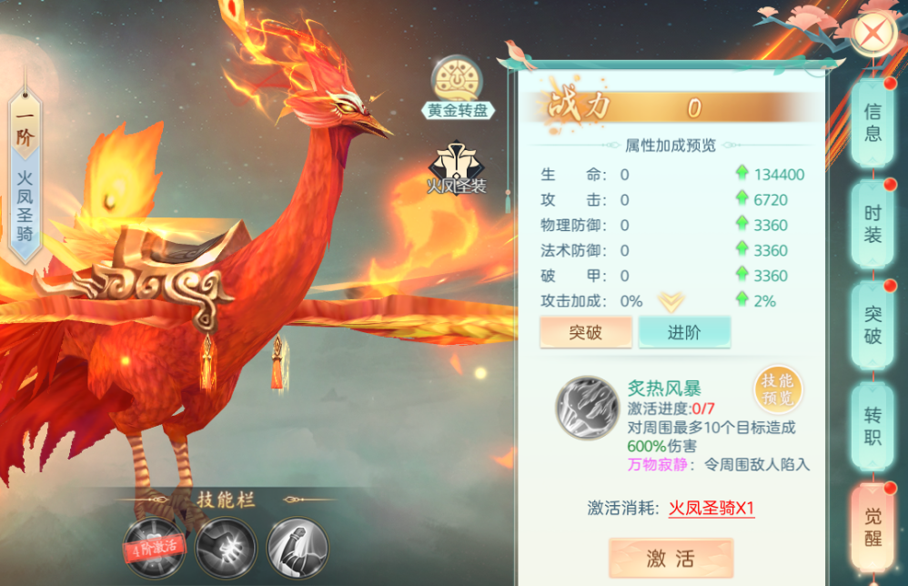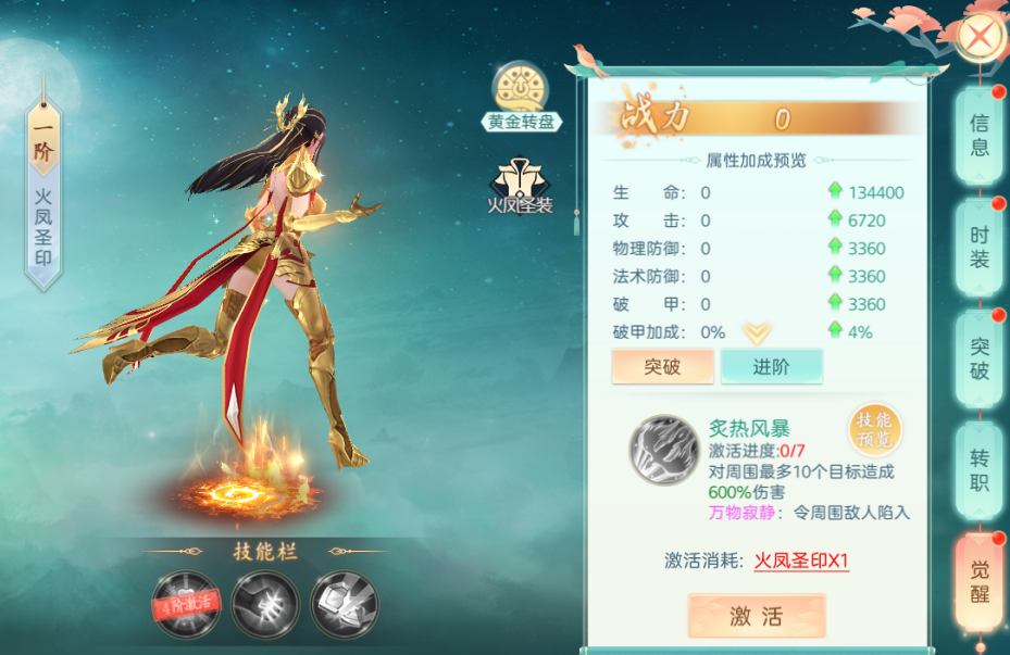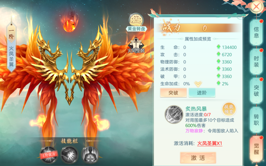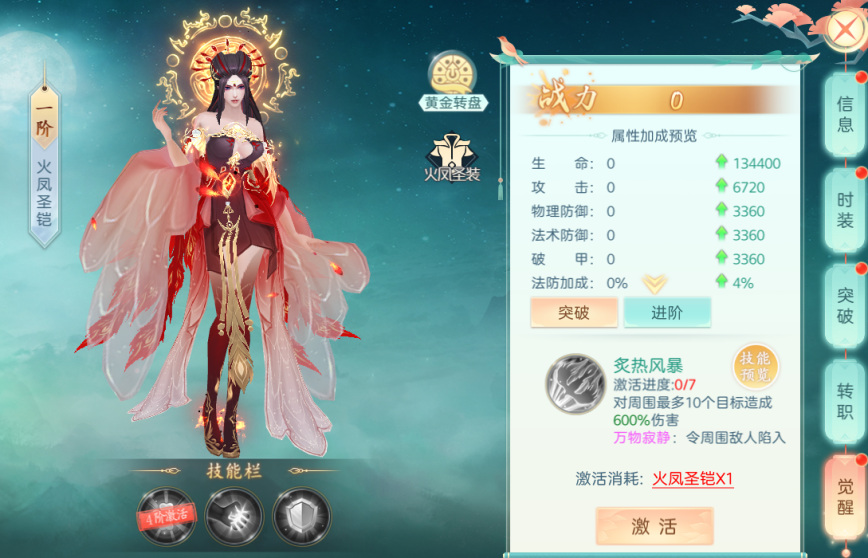 【玩法说明】圣装共分为7个部位,每激活1个部位可以提升人物百分比战力。激活7个部位后可获得强大技能:炙热风暴,可对周围10个玩家造成3秒沉默和减速,10秒内且每2秒造成当前生命5%伤害和10秒内增加5%友军破甲和防御属性。