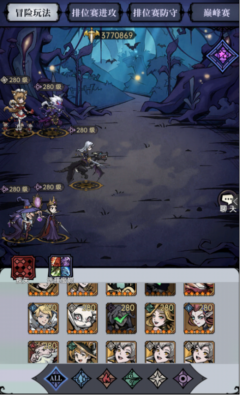 【强力阵容】:暗黑骑士(前排肉盾)、魔镜王后(核心输出)、邪魔悟空(核心输出)、搭配强力辅助疯外婆、女仆苏菲,简直无敌于天下