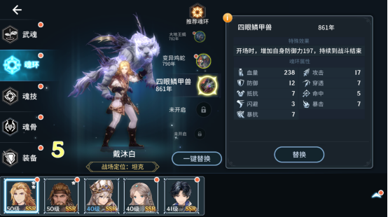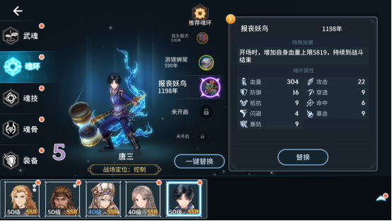 魂师的重中之重,魂力和魂环的提升。是最先解锁也是最容易提升的属性。每日通过猎杀魂兽即可获得各种年份的魂环,选择对应属性的魂环吸收即可。