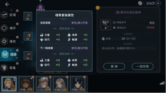 最后再来说说魂技,魂技可以进行蓄能,每次蓄能都能提供对应的属性加成,蓄能到一定次数后,所有的魂技等级都会提升一级。越到后期能够提升的属性越多。所以魂技的提升,也是战力提升必不可少的一环。