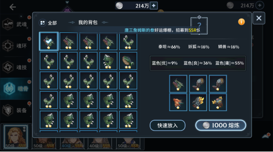 另外魂骨的获得方式比较多,所以在获得多余的魂骨后可以进行熔炼,熔炼出更高等级和更稀有的魂骨。