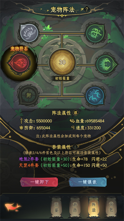 一些宠物符石则会提升灵兽园中所有灵兽的实力,配置更高级的符石套装将获得飞跃式的实力提升。