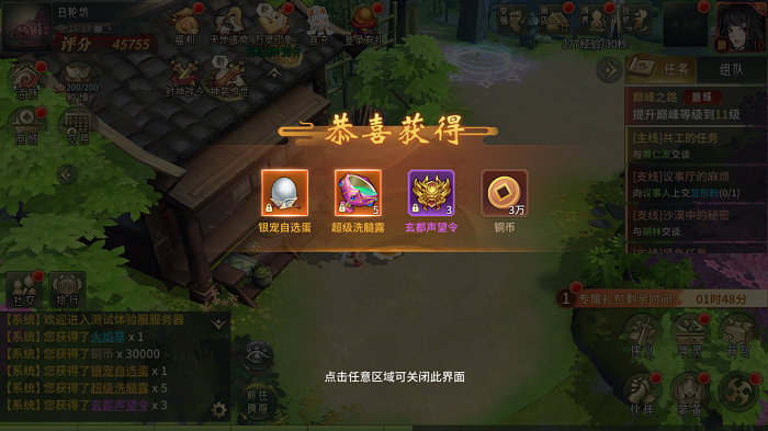 每当隐藏任务完成后,少侠有可能会获得铜币、洗髓露和该区域的声望令等奖励哦,还有机会获得其他惊喜奖励
