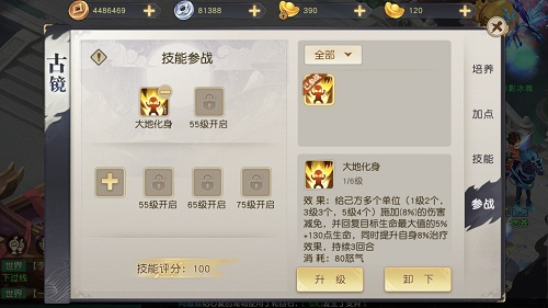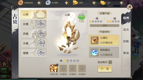 除了伙伴和宠物,游戏中还存在一个独特的法宝体系,能为玩家带来大幅实力提升。游戏中共有五面古镜,根据古镜的不同,有输出、治疗、控制等技能,而所有玩家均可以获取这些古镜并装备技能,也就是说输出玩家也可以拥有治疗技能,大大丰富了战斗的灵活度。古镜也有自带的阵法功能,能够在战斗中为玩家带来战斗加成。所以玩家若想在战斗中碾压敌人,不仅要提升古镜自身的等级,还要装备合适的技能并正确运用古镜的阵法。