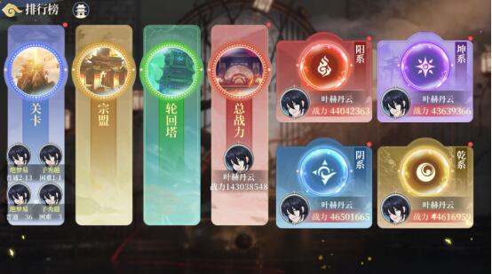 排名分类:玩法排名、队伍总战力排名和灵将战力排名