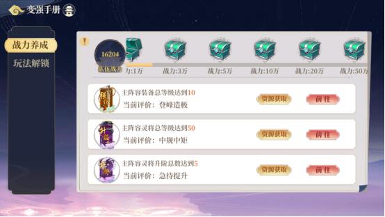 功能:战力养成目标、玩法解锁介绍